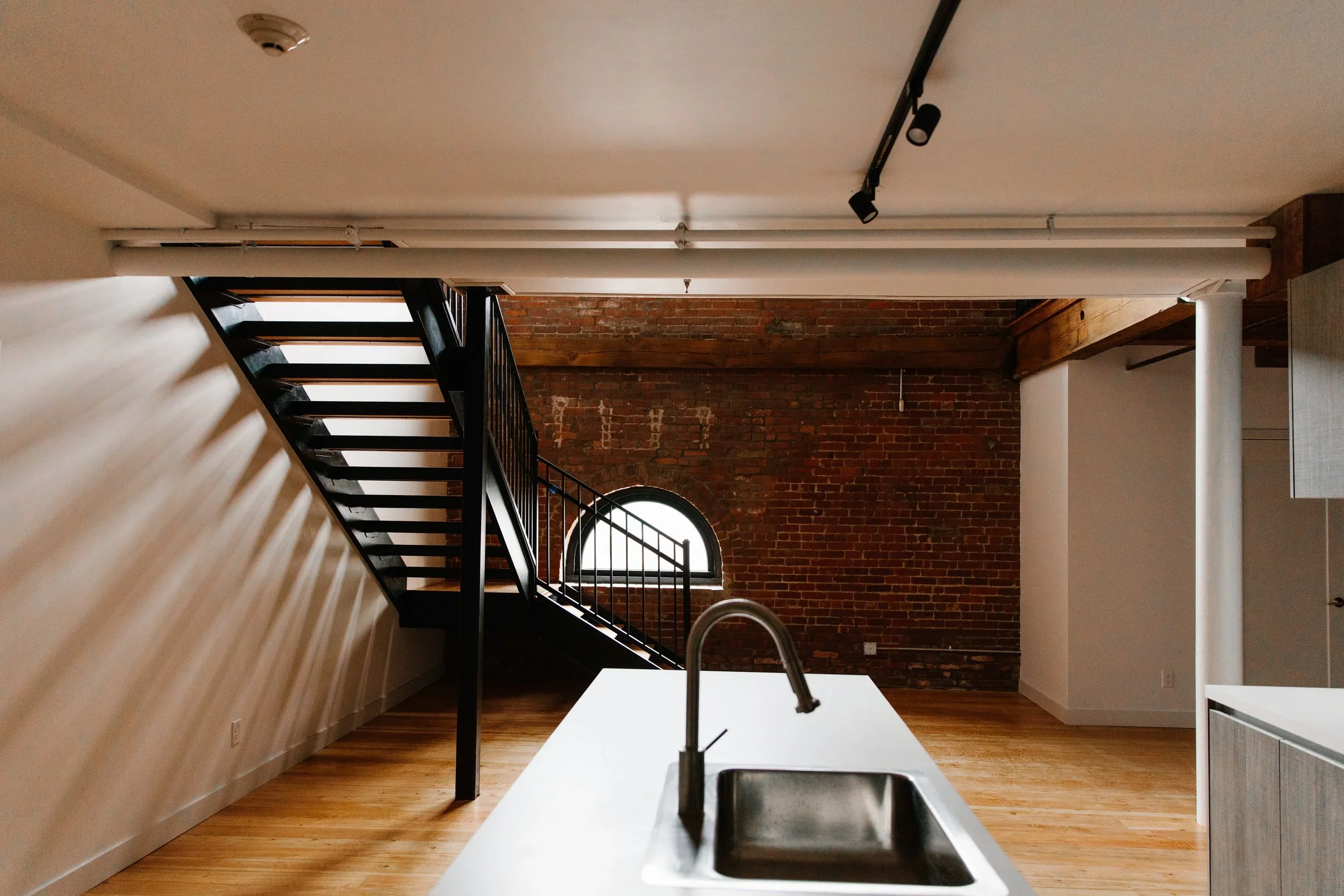 The meticulous renovation preserves defining features of the building’s industrial and ecclesiastical past while introducing high-end contemporary finishes. Units range from studios and one-bedroom apartments to two-bedroom lofts and duplex townhouses, each benefiting from elements like high ceilings, exposed brick, hardwood floors, oversized windows, and abundant natural light